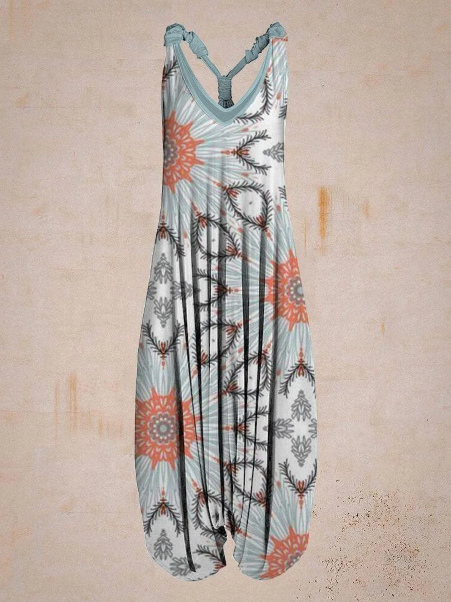 • Women Vintage Floral Sleeveless Harem Jumpsuit